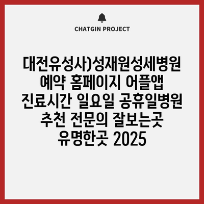 대전유성사)성재원성세병원 예약 홈페이지 어플앱 진료시간 일요일 공휴일병원 추천 전연락 잘보는곳 유명한곳 2025 에 대해 자주 묻는 질문 TOP 5