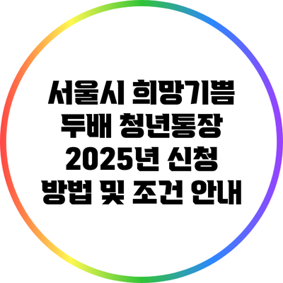 서울시 희망기쁨 두배 청년통장 2025년 신청 방법 및 조건 공지