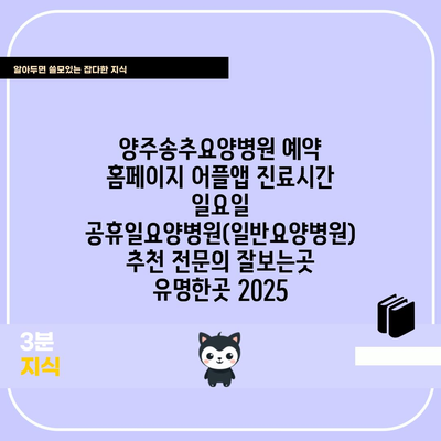양주송추요양병원 예약 홈페이지 어플앱 진료시간 일요일 공휴일요양병원(일반요양병원) 추천 전연락 잘보는곳 유명한곳 2025 에 대해 자주 묻는 질문 TOP 5