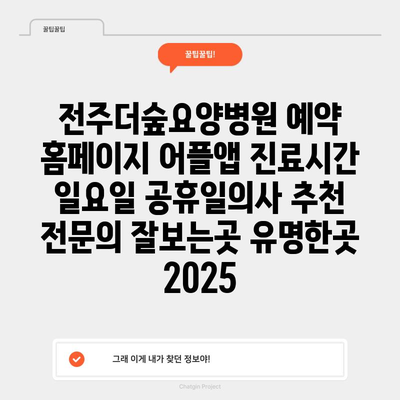전주더숲요양병원 예약 홈페이지 어플앱 진료시간 일요일 공휴일의사 추천 전연락 잘보는곳 유명한곳 2025 에 대해 자주 묻는 질문 TOP 5