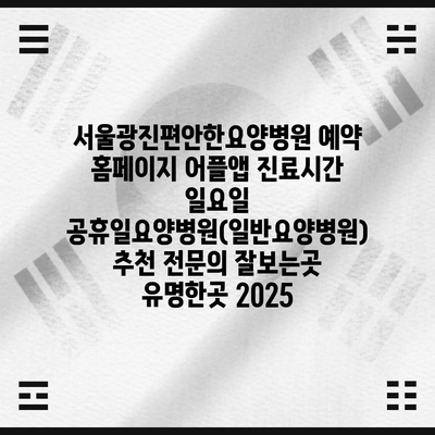 서울광진편안한요양병원 예약 홈페이지 어플앱 진료시간 일요일 공휴일요양병원(일반요양병원) 추천 전문의 잘보는곳 유명한곳 2025