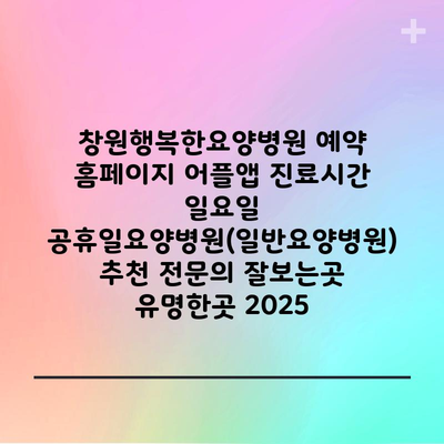 창원행복한요양병원 예약 홈페이지 어플앱 진료시간 일요일 공휴일요양병원(일반요양병원) 추천 전문의 잘보는곳 유명한곳 2025