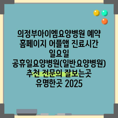 의정부아이엠요양병원 예약 홈페이지 어플앱 진료시간 일요일 공휴일요양병원(일반요양병원) 추천 전문의 잘보는곳 유명한곳 2025