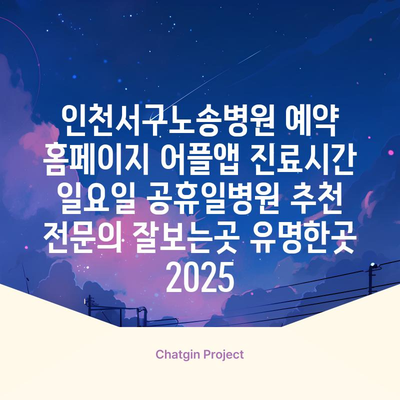 인천서구노송병원 예약 홈페이지 어플앱 진료시간 일요일 공휴일병원 추천 전문의 잘보는곳 유명한곳 2025