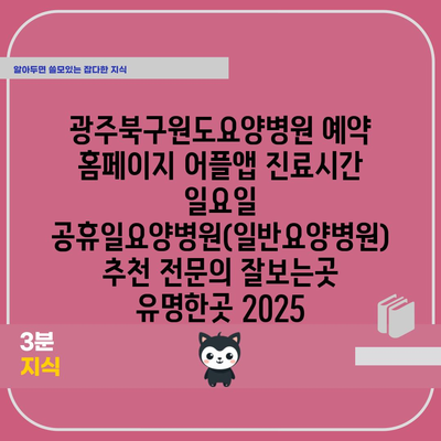 광주북구원도요양병원은 예약 홈페이지와 어플앱을 통해 간편하게 진료 예약을 할 수 있는 일반요양병원입니다. 이 병원은 진료시간이 유연하게 운영되어, 일요일 및 공휴일에도 …