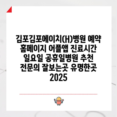 김포김포에이치(H)병원은 예약 홈페이지와 어플리케이션을 통해 언제든지 쉽고 간편하게 예약할 수 있는 병원입니다. 이 병원의 진료시간은 평일과 주말, 일요일 및 공휴일에도 …