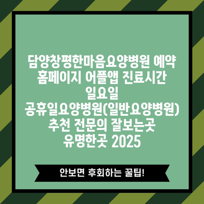 담양창평한마음요양병원 예약 홈페이지 어플앱 진료시간 일요일 공휴일요양병원(일반요양병원) 추천 전문의 잘보는곳 유명한곳 2025