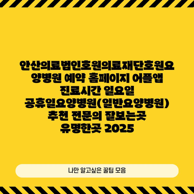 안산의료법인호원의료재단호원요양병원 예약 홈페이지 어플앱 진료시간 일요일 공휴일요양병원(일반요양병원) 추천 전문의 잘보는곳 유명한곳 2025