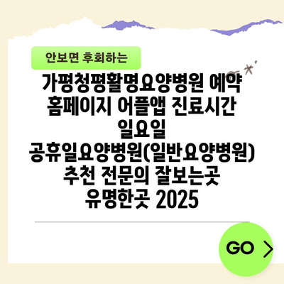 가평청평활명요양병원은 2025년에도 많은 환자들에게 사랑받는 전문요양병원입니다. 특히, 예약 홈페이지와 어플앱을 통해 간편하게 예약할 수 있는 점이 장점으로 꼽힙니다. 진료시간은 평일에도 …