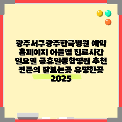 광주서구광주한국병원은 예약 홈페이지와 어플 앱을 통해 간편하게 진료를 예약할 수 있는 종합병원입니다. 이 병원은 일요일과 공휴일에도 진료를 알려드려, 바쁜 일정을 …