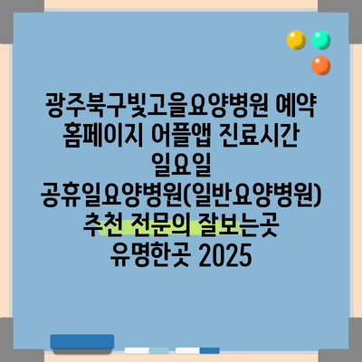 광주북구빛고을요양병원 예약 홈페이지 어플앱 진료시간 일요일 공휴일요양병원(일반요양병원) 추천 전문의 잘보는곳 유명한곳 2025