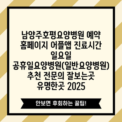 남양주호평요양병원은 예약 홈페이지와 어플앱을 통해 간편하게 진료 예약을 할 수 있는 요양병원입니다. 이곳은 일요일과 공휴일에도 진료를 시행하여 많은 환자들이 이용하고 …